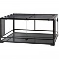 Верхняя крышка террариума - это жаростойкая и устойчивая к ржавчине стальная сетка. Эта сетка полностью снимается, что позволяет легко получить доступ к внутренней части террариума без риска побега животного или стресса для него. При этом она закреплена специальными замками, что делает невозможным побег даже самого сильного питомца. Сетка обеспечивает отличный газообмен и дополнительно защищает животное от ожогов при контакте с нагревательной лампой.